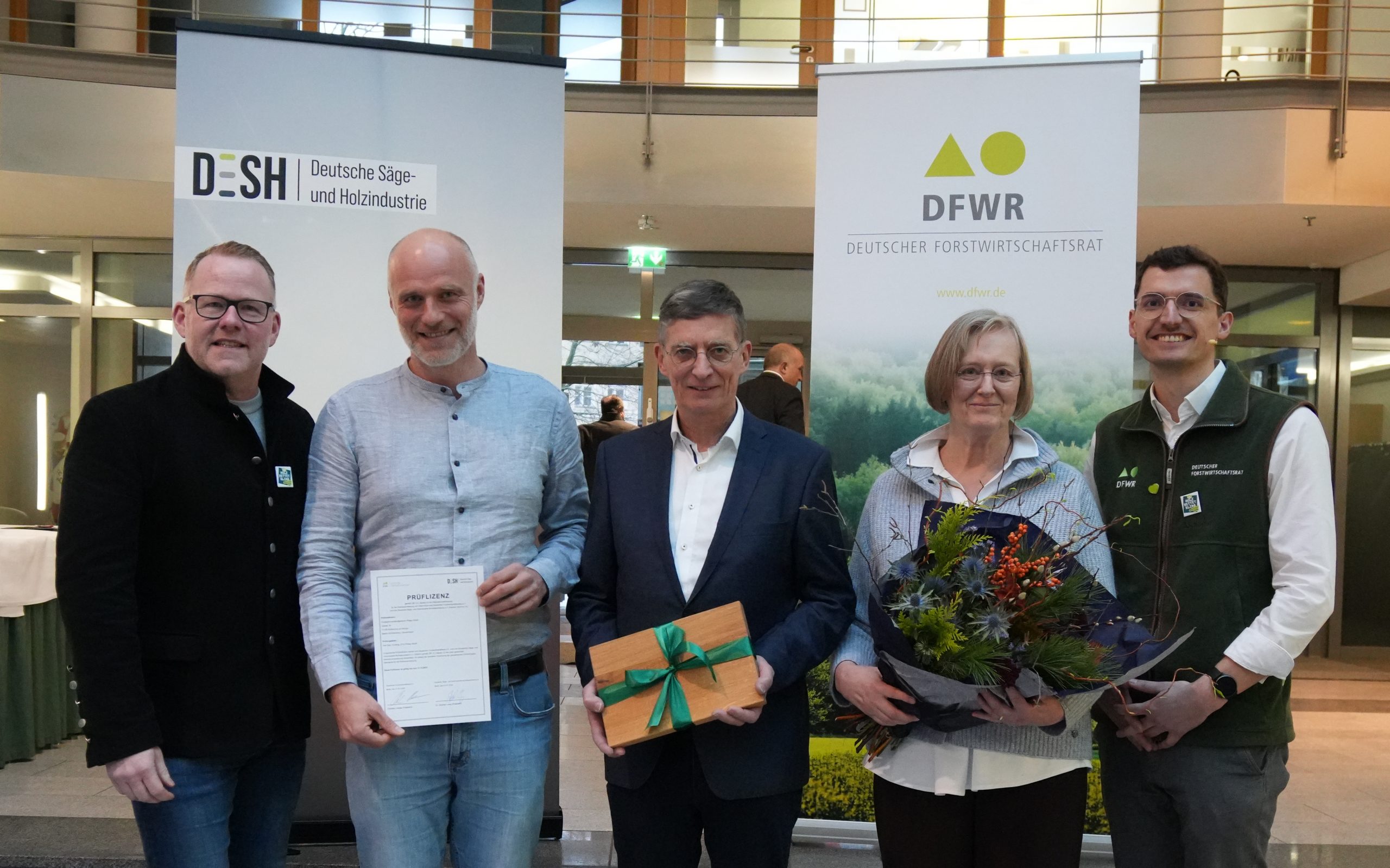 Berlin, 14. Januar 2026 – Der Deutsche Forstwirtschaftsrat (DFWR) und der Deutsche Säge- und Holzindustrie Bundesverband (DeSH) informieren darüber, dass für die Zertifizierungsaufgaben zur Rahmenvereinbarung für die Werksvermessung von Stammholz (RVWV) eine Nachfolgeregelung erfolgreich umgesetzt wurde: Herr Philipp Würth hat mit seinem Forstsachverständigenbüro zum 1. Januar 2026 das entsprechende Geschäftsfeld des Forstsachverständigenbüros Thomas Schneider übernommen. Bereits im Verlauf des vergangenen Jahrs war Herr Würth dort intensiv eingebunden, sodass eine umfassende Einarbeitung und strukturierte Wissensweitergabe erfolgt ist.